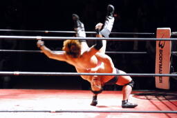 そしてぶっこ抜きジャーマン(左写真)、カウント3。