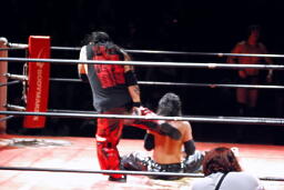 大鷲「もう俺がとやかく言う問題じゃねえな。エルドラドがなくなった時、ただ自分たちが集まれる家が欲しいってことで紅白プロレス作りました。いろいろあったけど、今日で全て報われた気がします。今まで後輩と見てきたけど、お前らは仲間だよ。」(左写真)