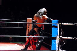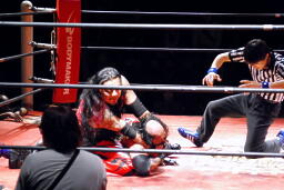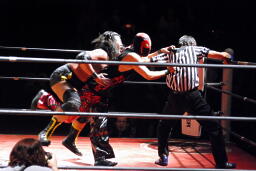ブードゥー・マスクはウラカン・ラナに切り返す(左写真)、カウント2。