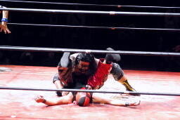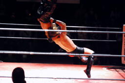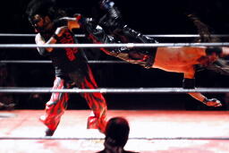 ブードゥー・マスクが客席で大鷲を攻める(右写真)。