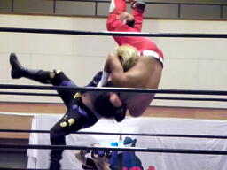 拳王ジャーマン(左写真)、カウント2。