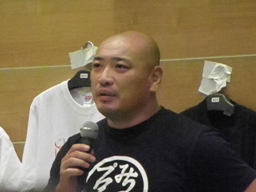 人生「十五の11月岩手県営大会、さっきの試合でハヤトと塁の試合も決まったことだし、九龍との全面対抗戦にしようと思ったけど、サスケ社長がタイトルに絡むのも見たい気がする。今の拳王はみちのくのリングだけじゃなく、どこの団体のリングに出しても一番強いと思ってます。11月の県営で、その拳王に、サスケ、挑戦して、中年の意地見せてください。」この人生の裁定により11/7の岩手県営体育館大会で選手権決定。(右写真)