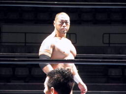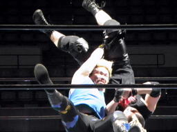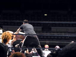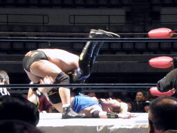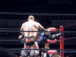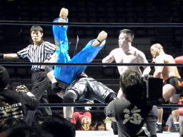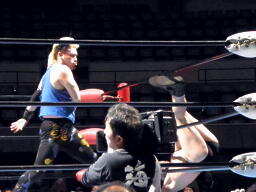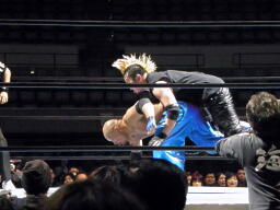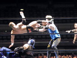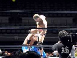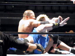 KenはガットショットからDDTに(右写真)、東郷にタッチ。