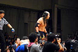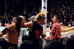 マットをKenに投げつける秀(右写真)。