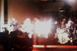ここから写真はiPhone。野橋がギターを渡されるとなぜか弾き出す。Kenがギターで殴る。リッキーが野橋を肩に担ぐ(左写真)。