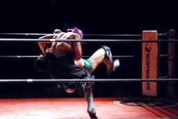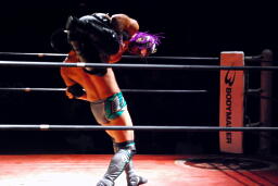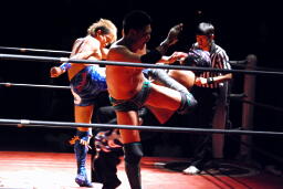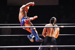 日高はコーナーに上ると政宗のヒザへのミサイルキック(右写真)、