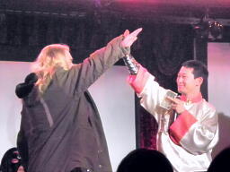 趙雲が「I Don't Want to Miss A Thing」を歌いながら登場(右写真)。
