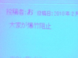 「バカ社長が爆竹ポア」という書き込み。あわてた亜門が「大家が爆竹阻止」と書き込む(左写真)。大家がSKBを控室方向に拉致。直後になんか大きい音がしたが何だろう?