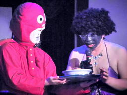 怨霊と乞食は「誰も寝てはならぬ」に乗せて自分らがFBIの捜査官であると明かす(左写真)。