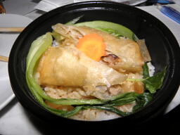 SKBがハルマゲドンならぬ「春巻丼」を作っている(右写真)。今回初挑戦だが、これがこのレストランの名物メニューになるかもしれない、と。