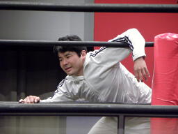ヨシヒコ入場。セコンドは五味さん(右写真)。