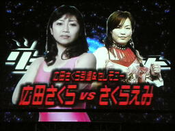 そこで引退試合、引退セレモニーを改めて行うことに。「引退するためにユニオンで復帰した」とまで言い切る。引退試合の相手はさくらえみ。夢の「さくら」対決(左写真)。