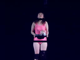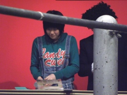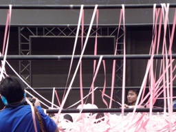 10カウント終了と同時に最前列席の人にあらかじめ配られていたピンクの紙テープが投げ込まれる(右写真)。