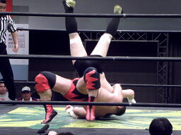 大谷バック取る、ヒカルは前方回転してアンクルホールドに(左写真)。