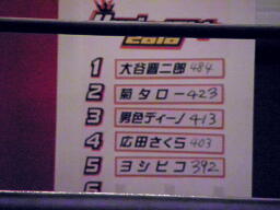 得点は99、93、95、98、99の484点、菊タローを大きく超え、暫定1位に(右写真)。なんとなく抜かれた菊タローも嬉しそう。高木「Perfectでしょう。いろんなところに謝りに行かなきゃいけない。」