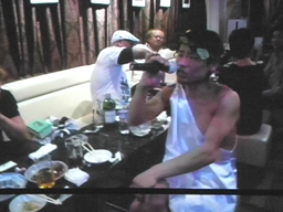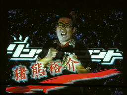 新藤泣きながら「残念なお知らせ」(左写真)。「本日復帰を予定していた猪熊選手ですが、練習中のアクシデントにより・・・すべての記憶をなくしてしまいました。」えーっ。「選手生命、いや人間としての生命の危機ですので会社としては説得を試みたのですが、本人は記憶が戻れば闘える、とのことですので、ここで猪熊裕介の記憶を取り戻したいと思います。」