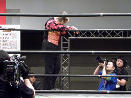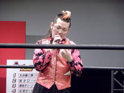 改めて入場から。諸橋晴也入場。なんかくまだまさしっぽい(左写真)。
