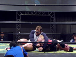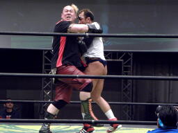 落胆する猪熊に諸橋はクリップラー・クロスフェース(右写真)。猪熊危うし。ここで場内暗転。