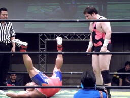 諸橋はアントンにストンピング(右写真)。5分経過。