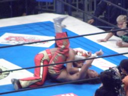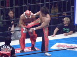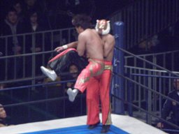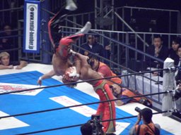 タイガーは投げっ放しタイガースープレックス、丸藤着地。丸藤不知火狙う、しかしタイガー切り返して再度タイガースープレックス(右写真)、これはカウント2。