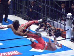 タイガーはムーンサルトダブルニードロップ(右写真)、カウント2。