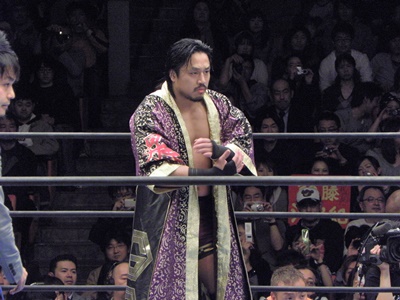 次の挑戦者を募る中邑(右写真)。そこに上がってきたのは真壁。観客の反応はあったが中邑は「杉浦に負け、後藤に負けて資格あるのか?」