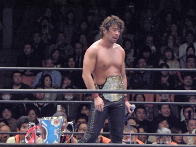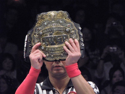 IWGPヘビー級のベルトが掲げられる(左写真)。