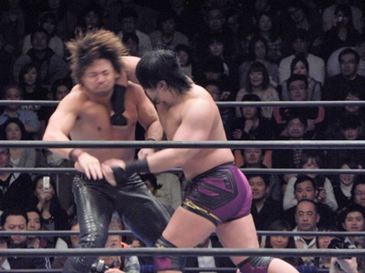 中邑逆片エビ(左写真)、後藤ロープ。