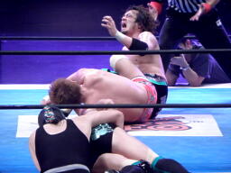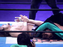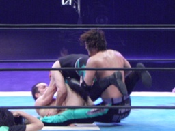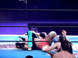 デヴィットはブラディサンデーの体勢、サムライ切り返して丸め込む(右写真)、カウント3。