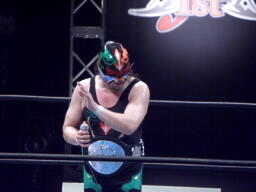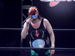 ベルトが新王者の腰に(右写真)。デヴィットがそんなに悔しくなさそうな感じなのが気になる。もうApollo55はお役御免なのか?