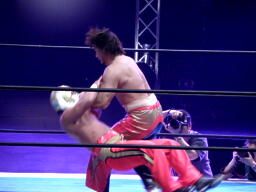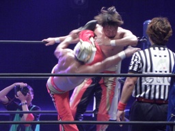 そしてタイガードライバー(右写真)、カウント2。タイガーバック取る、丸藤ブロック。