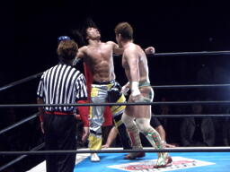 実に金本らしい試合。逆に石森はいいとこ出せずじまい。金本は「ノアはハヤトや飯伏みたいな他のインディー勢と違う。」と挑発。