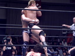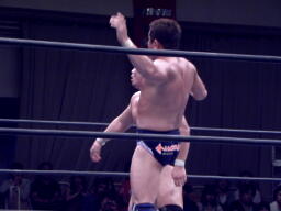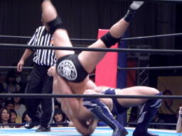 高橋張り手、永田ダウン。高橋ファイアマンキャリーからスタナー(左写真)。
