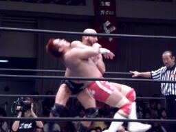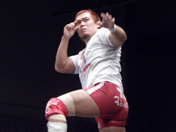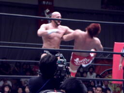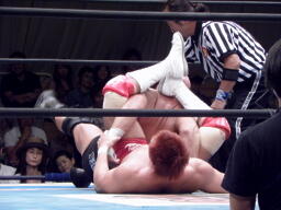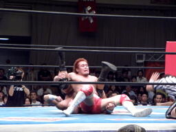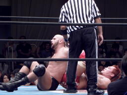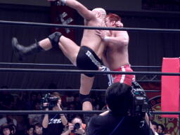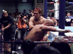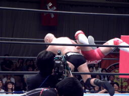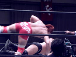 内藤ローブロー、アンダーソンキャッチしてラリアット(左写真)、カウント2。
