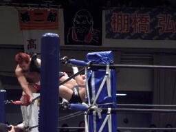 内藤アバランシュホールド(左写真)、コーナーに上る。