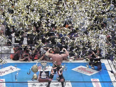 小島がIWGPのベルトを巻く(右写真)。
