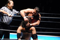 ブレーンバスター(右写真)、カウント2。10分経過。