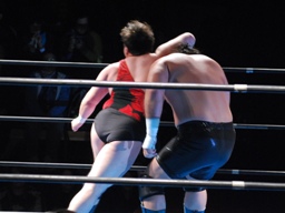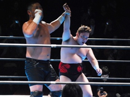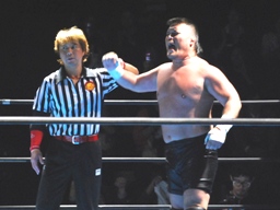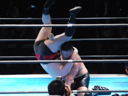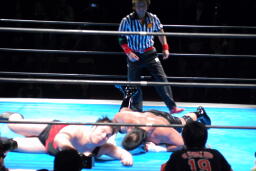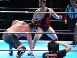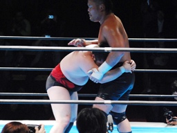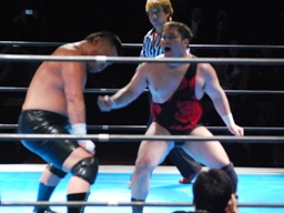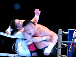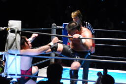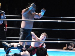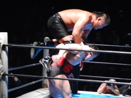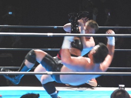 アントンオクラホマロール(左写真)、カウント2。10分経過。