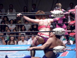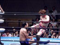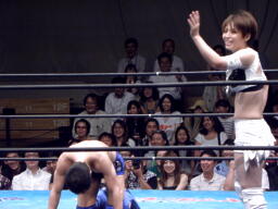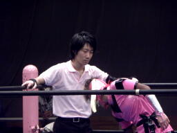 「タカちゃん、タッチ!」(右写真)冨宅は無視してリング下に降りる。