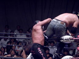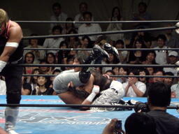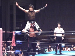 サスケが投げ落としMIKAMIがヴォルカニックボム(右写真)、