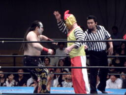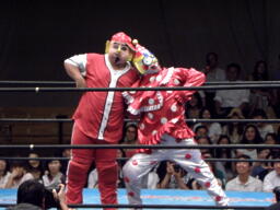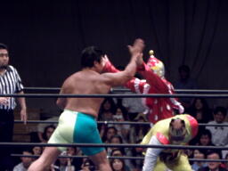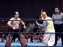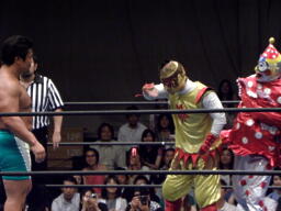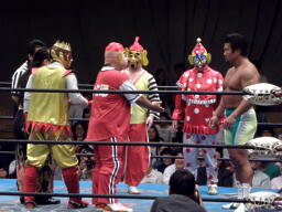 第6試合 松山勘十郎、タコヤキーダー、菊タロー vs 佐々木健介、くいしんぼう仮面、えべっさん