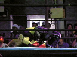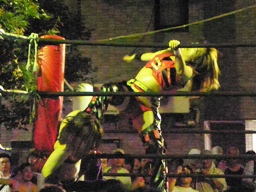 まさにお祭りプロレスの王道だなあ。客席に酔っ払い多いし。1年に1度、ここでしかプロレスなんか見ないって人も多いんだろうなあ・・・。