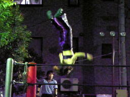 最後は場外に飛び出すが逆上がりでリングに戻る(右写真)。