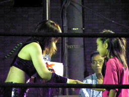 KAORUヘアホイップ(右写真)、場外エスケープした植松を追いかけて場外戦に。