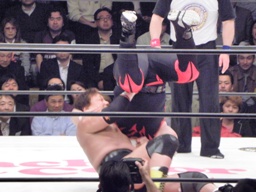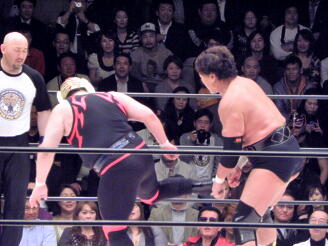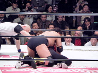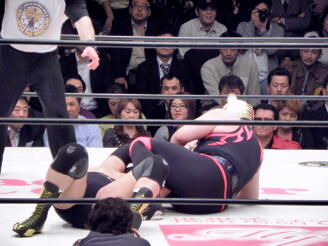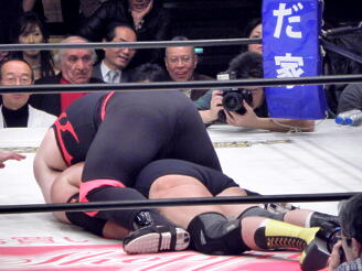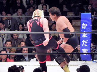 天龍ケサ固め、タイガーは十字に(右写真)、天龍ロープ。