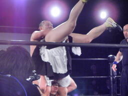 最後はゴッチ式パイルドライバー(右写真)で3カウント。