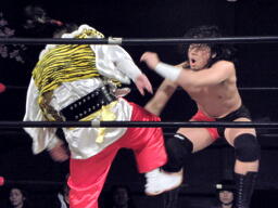 おふう佐々木にウラカン・ラナ(左写真)、カウント2。
