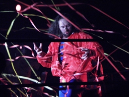 大量の紙テープが飛ぶ(左写真)。