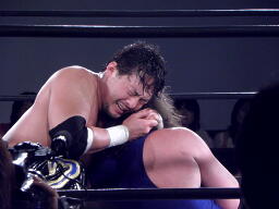 TAJIRIスリーパー(左写真)、絞めながらTAJIRI「We are friends」とか説得。