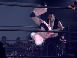 ジェシカTAJIRIとリンを場外に出すと場外にトペ・コン・ヒーロ(右写真)。